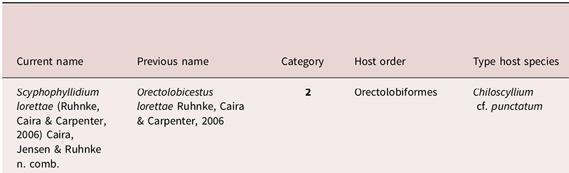 | Synonyms | Orectolobicestus lorettae (Ruhnke, Caira & Carpenter, 2006) Caira, Jensen & Ruhnke, 2020 |