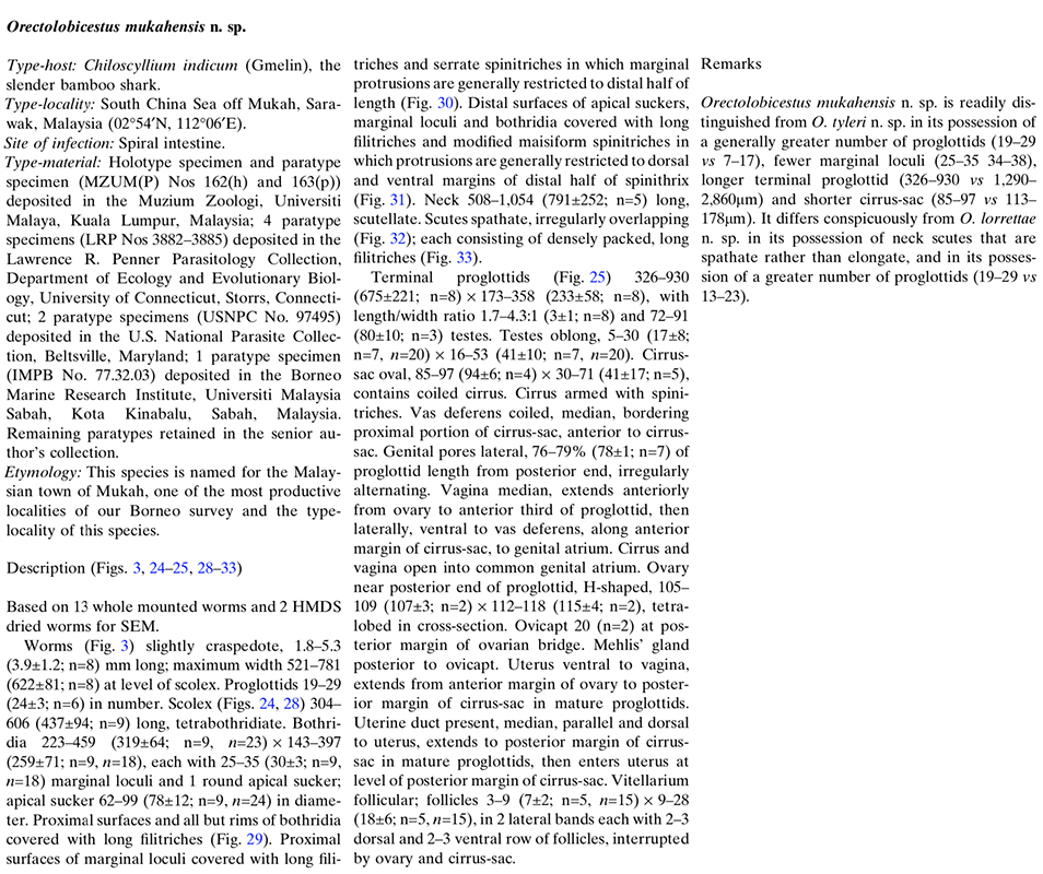 | Total Number of Type Specimens | 13 whole mounted worms and 2 HMDS dried worms for SEM |