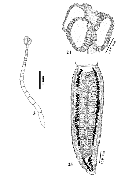 Ruhnke, T. R., J. N. Caira, and S. D. Carpenter. 2006. Orectolobicestus n. g. (Cestoda: Tetraphyllidea), with the description of five new species and the transfer of Phyllobothrium chiloscyllii to the new genus. Systematic Parasitology 65: 215-233. (4453) Download PDFCaira, J. N., K. Jensen, C. Hayes and T. R. Ruhnke. 2020. Insights from new cestodes of the crocodile shark, Pseudocarcharias kamoharai (Lamniformes: Pseudocarchariidae), prompt expansion of Scyphophyllidium and syonymization of seven phyllobothriidean genera—at last!. Journal of Helminthology (https://doi.org/10.1017/S0022149X20000036): 1–24. (7164) Download PDF |