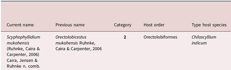 | Synonyms | Orectolobicestus mukahensis Ruhnke, Caira & Carpenter, 2006 |