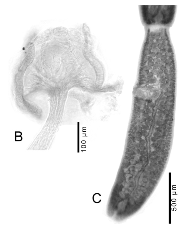 Caira, J. N., K. Jensen, C. Hayes and T. R. Ruhnke. 2020. Insights from new cestodes of the crocodile shark, Pseudocarcharias kamoharai (Lamniformes: Pseudocarchariidae), prompt expansion of Scyphophyllidium and syonymization of seven phyllobothriidean genera—at last!. Journal of Helminthology (https://doi.org/10.1017/S0022149X20000036): 1–24.