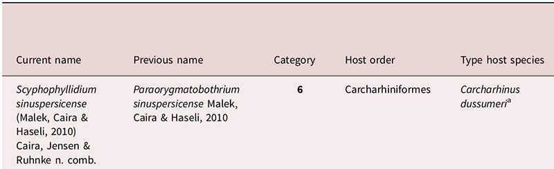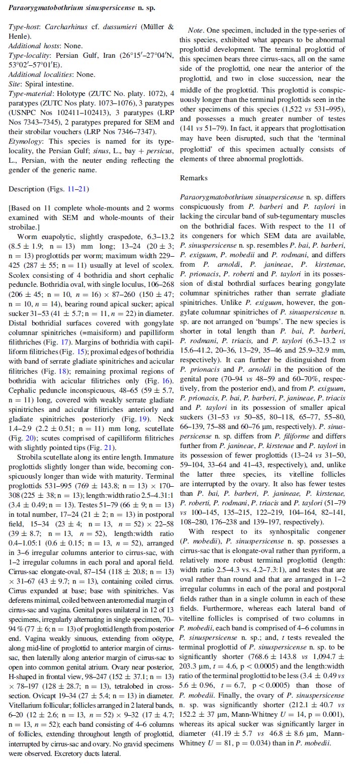 Synonyms Paraorygmatobothrium sinuspersicense Malek, Caira & Haseli, 2010