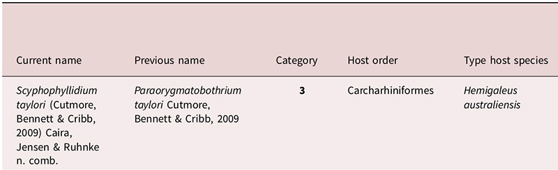| Synonyms | Paraorygmatobothrium taylori Cutmore, Bennett & Cribb, 2009 |