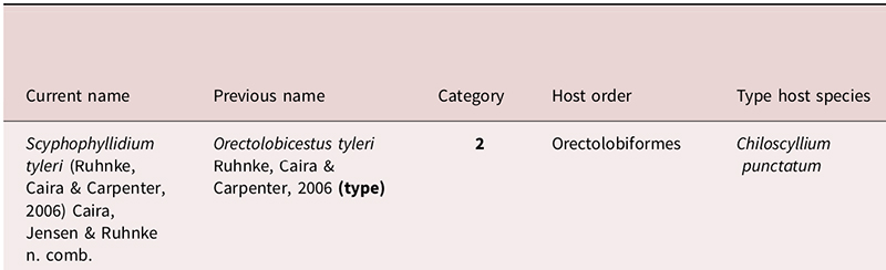 | Synonyms | Orectolobicestus tyleri Ruhnke, Caira & Carpenter, 2006 |