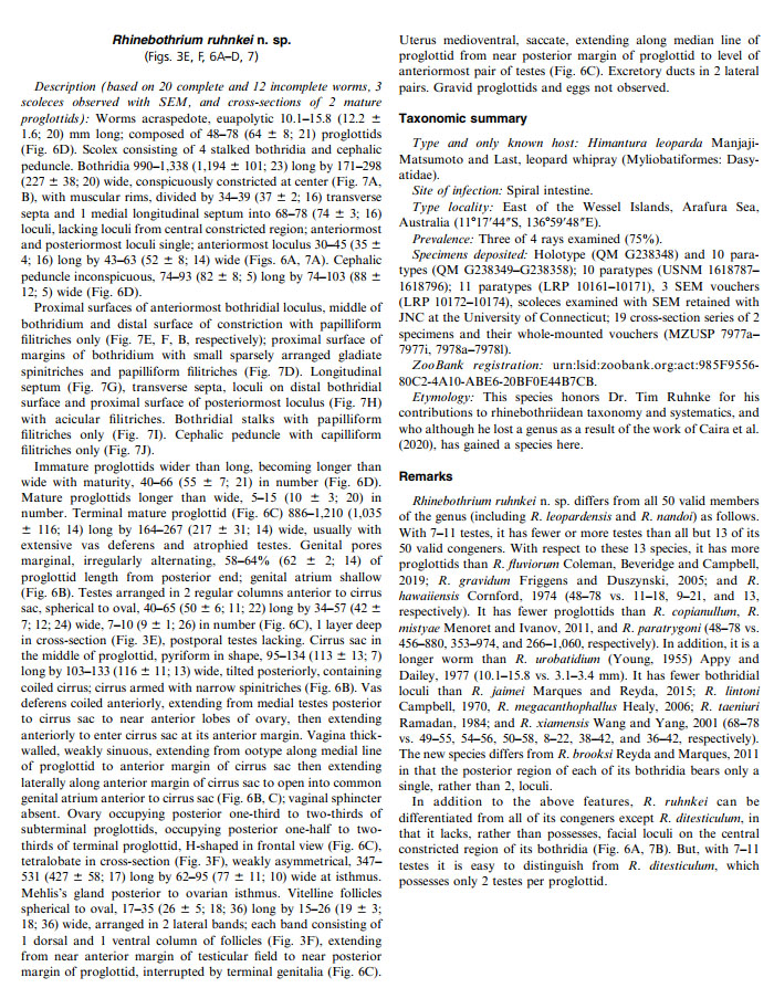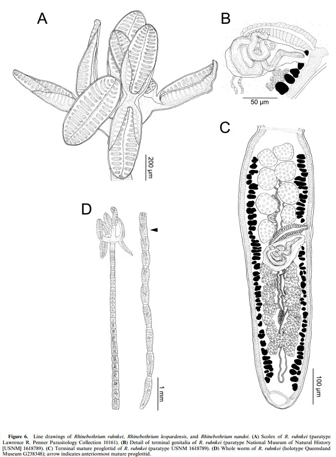 Trevisan, B. and J. N. Caira. 2020. Three new species of Rhinebothrium (Cestoda: Rhinebothriidea) from the leopard whipray, Himantura leoparda, in Australia. Journal of Parasitology 106(6): 789-801. (7222) Download PDF |