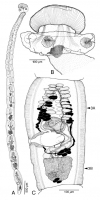 Figure 1. Line drawings of Tetragonocephalum georgei n. sp. (A–C). (A) Whole worm (holotype,