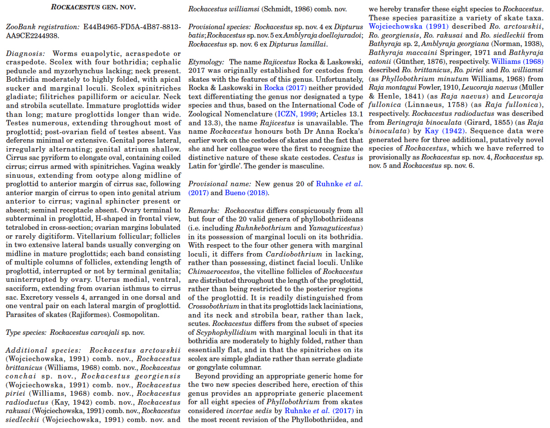 | Type Species | Rockacestus carvajali Caira, Bueno & Jensen, 2021 |