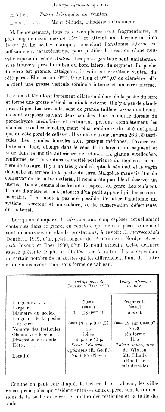 Baer, J-G. 1933. Contribution a l‘etude de la Faune helminthologique africaine. Revue Suisse de Zoologie 40: 31-84. (5195) Download PDFKirshenblat, Ya. D. 1938. Zakonomernosti dinamiky parazitofauni myschevidnyh gryzunov. Izdanie Lenindgradskogo Gosudarstvennogo Universiteta : pp 92. (4635) Download PDF |
