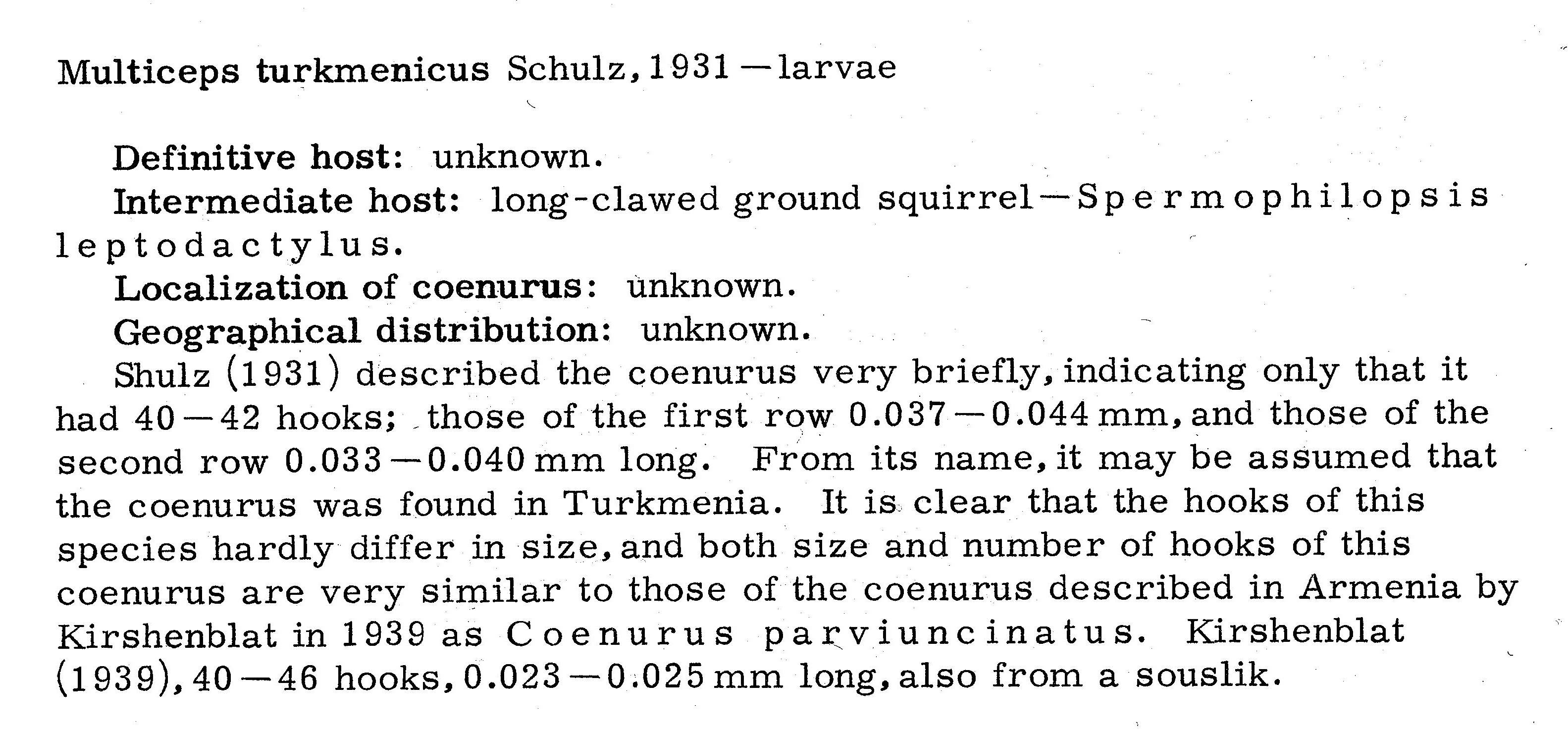 | Synonyms | Taenia turkmenicus (Schulz, 1931) Schmidt, 1986 |