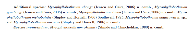 | Genus | Myzophyllobothrium |