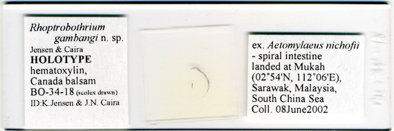 | Synonyms | Rhoptrobothrium gambangi Jensen & Caira, 2006 |