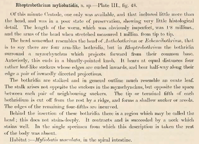 | Synonyms | Rhoptrobothrium myliobatidis Shipley & Hornell, 1906 |