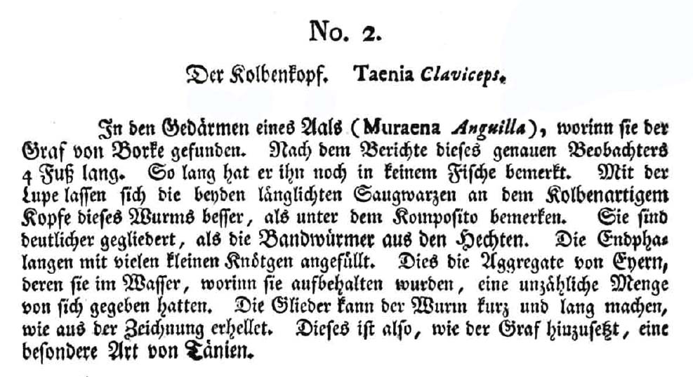 Goeze, J. A. E. 1782. Versuch einer Naturgeschichte der Eingeweidewürmer thierischer Körper. Gedruckt bey Philipp Adam Pape, Blankenburg, 471 pp & 44 plat pp.