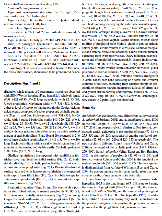 | Scientific Name Notes | LSID for Anthobothrium parimae sp. nov. is urn:lsid:zoobank. org:act:2C50FAFB-BC46-48E1-9938-F935D447C47B |