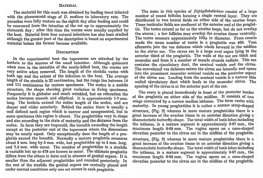 | Host Notes | -material for redescription was obtained by feeding trout infected with the plerocercoid stage of D. medium to laboratory rats |