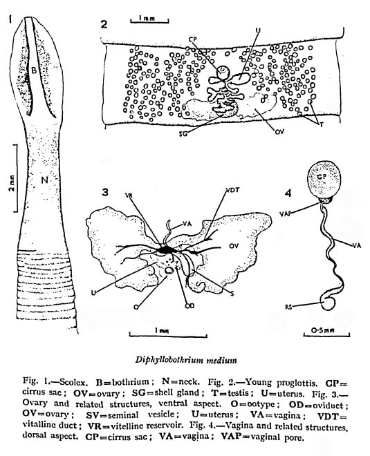 | Synonyms | -Dibothriocephalus medium Fahmy, 1954; --Dibothriocephalus medius by Sandras (1957) |