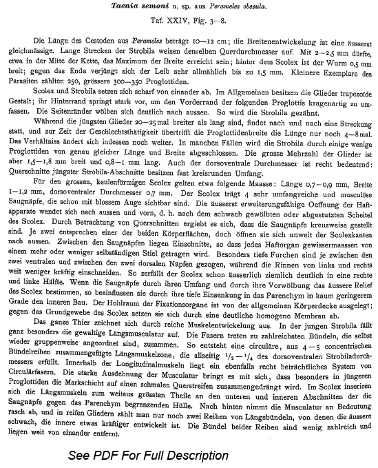 | Synonyms | Taenia semoni Zschokke, 1898; Pseudolinstowia semoni (Zschokke, 1898) Spasskii, 1987 |