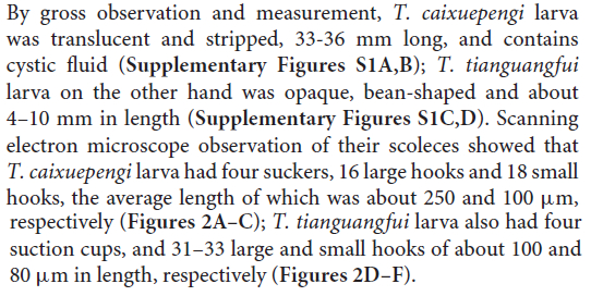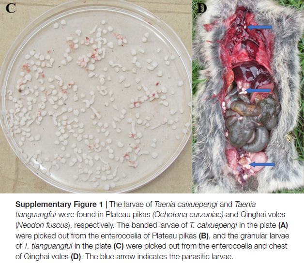 Wu, Y-D, L. Li, Y-L. Fan, X-W. Ni, J. A. Ohiolei, W-H. Li, J-Q. Li, N-Z. Zhang, B-Q. Fu, H-B. Yan, and W-Z. Jia. 2021. Genetic evolution and implications of the mitochondrial genomes of two newly identified Taenia spp. in rodents from Qinghai-Tibet Plateau. Frontiers in Microbiology 12: 647119. (7427) |