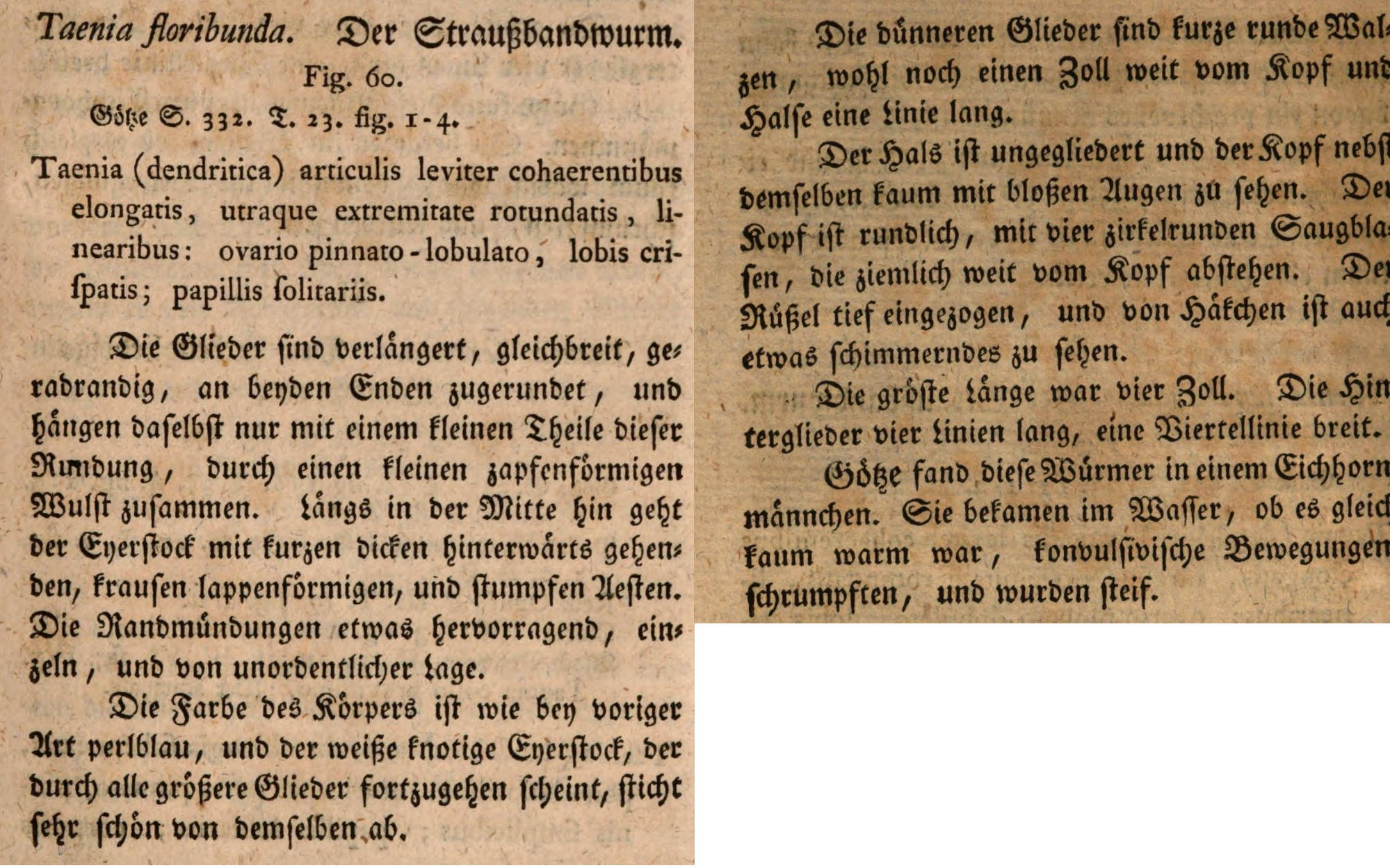 Batsch, A. J. G. 1786. Naturgeschichte der Bandwurmgattung überhaupt und ihrer Arten insbesondere, nach dem neuern Beobachtungen in einem systematischen Auszuge. Johann Jacob Gebauer, Halle, 298 pp. (4174) Download PDF |