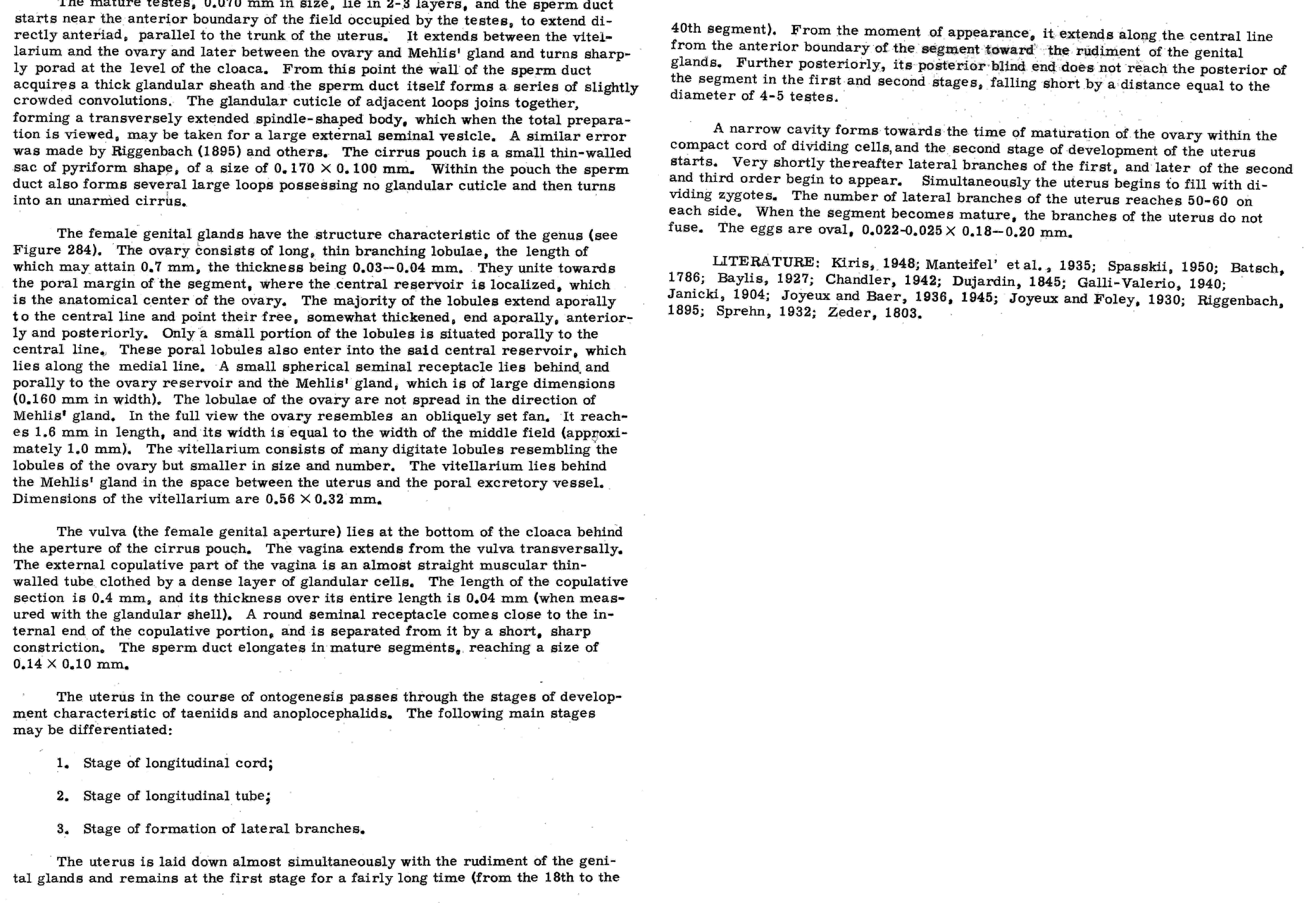 Goeze, J. A. E. 1782. Versuch einer Naturgeschichte der Eingeweidewürmer thierischer Körper. Gedruckt bey Philipp Adam Pape, Blankenburg, 471 pp & 44 plat pp. (4166) Download PDFCohn, L. 1901. Zur Anatomie und Systematik der Vogelcestoden. Nova acta Academiae Caesareae Leopoldino-Carolinae Germanicae Naturae Curiosorum = Abhandlungen der Kaiserlichen Leopoldinisch-Carolinischen Deutschen Akademie der Naturforscher 79: 263-450. (5377) Download PDF |