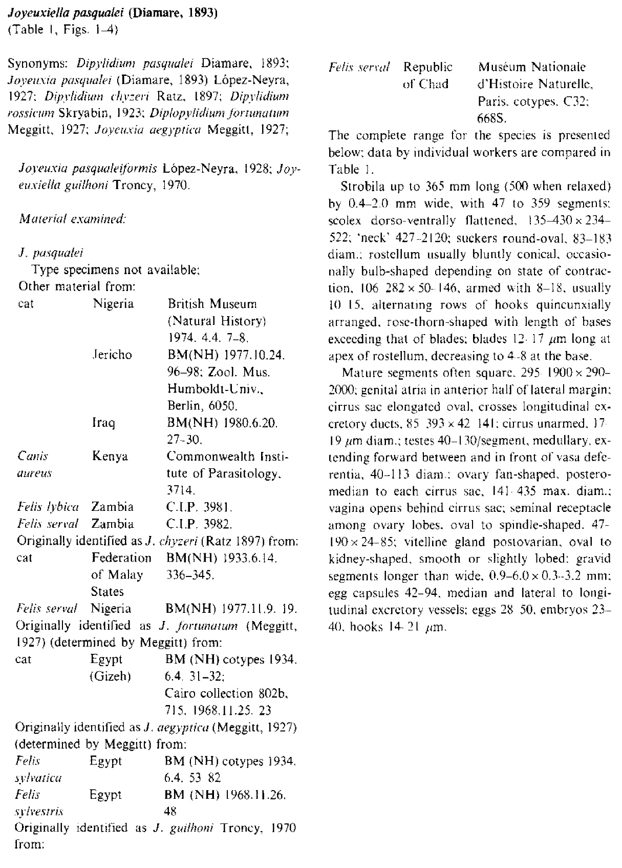| Valid Name | Joyeuxiella pasqualei (Diamare, 1893) Fuhrmann, 1935 |