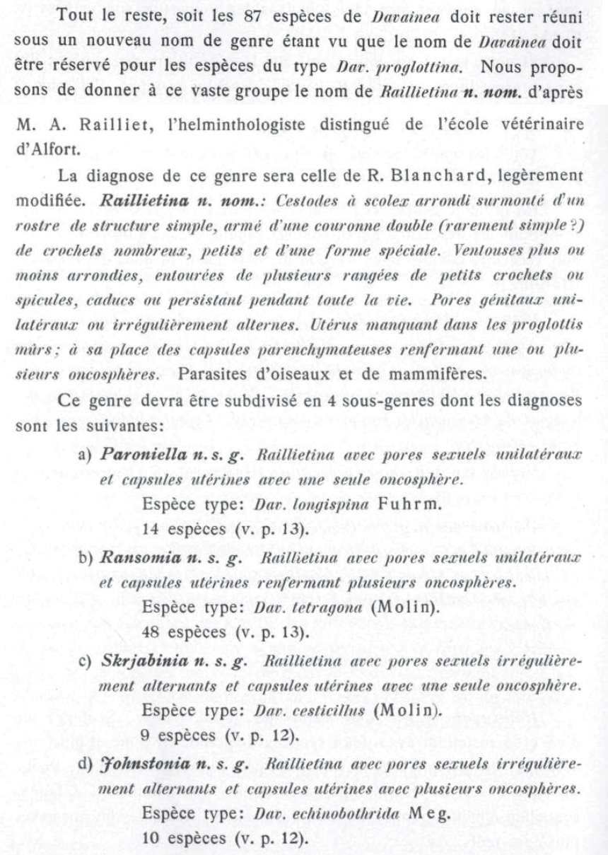| Scientific Name Notes | Created as a subgenus of Raillietina Fuhrmann, 1920. |