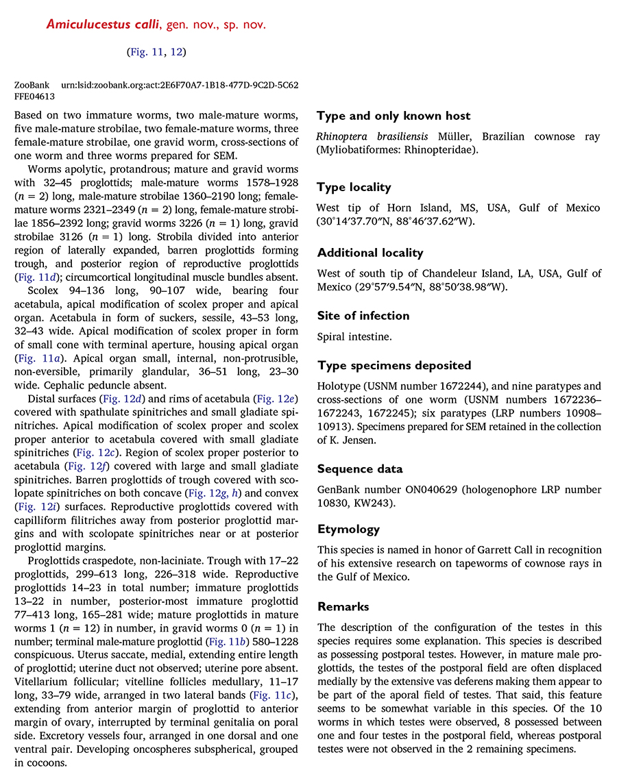 | Type Material | Holotype (USNM number 1672244), and nine paratypes and cross-sections of one worm (USNM numbers 1672236– 1672243, 1672245); six paratypes (LRP numbers 10908– 10913) |