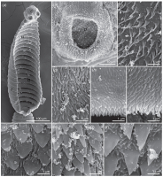| Total Number of Type Specimens | Two immature worms, two male-mature worms, five male-mature strobilae, two female-mature worms, three female-mature strobilae, one gravid worm, cross-sections of one worm and three worms prepared for SEM |