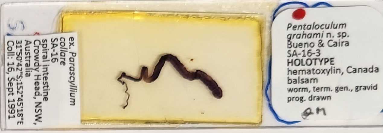 Bueno, V.M. and J.N. Caira. 2023. Phylogenetic relationships. host associations, and three new species of a poorly known group of "tetraphyllidean" tapeworms from elasmobranchs. Zootaxa 5254(1): 030–050. (7496) Download PDF |