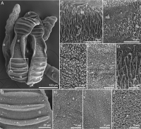 shown in B. (B) Distal bothridial surface of anterior region; small letter indicates detail shown in D. (C) Distal bothridial surface of anterior-most loculus of anterior region. (D)