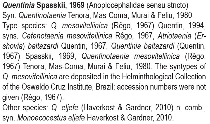 | Scientific Name Notes | Systematic position of Quentinia Spasskii, 1969 based on Haukisalmi (2023). |