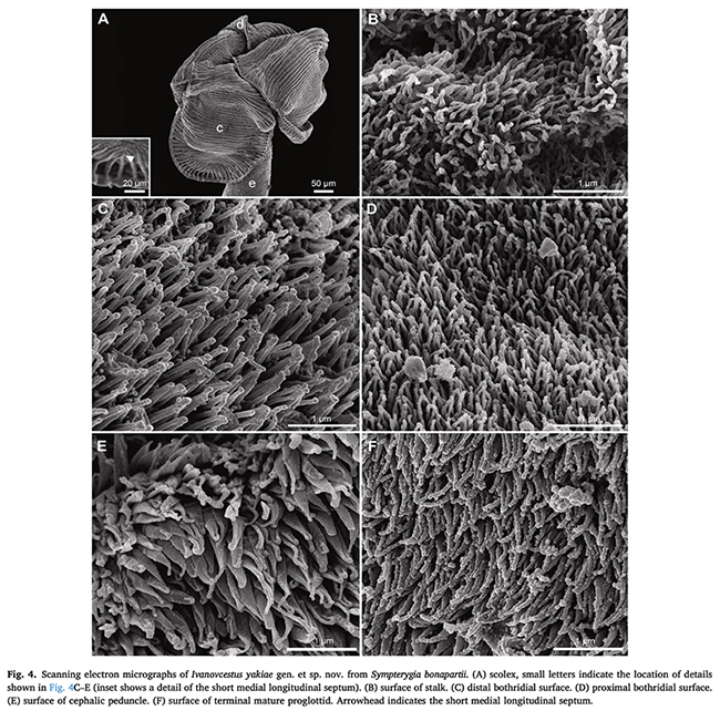 Franzese S., M. M. Montes, M. I. Shimabukuro, N. J. Arredondo. 2024. Description of a new genus of Escherbothriidae (Cestoda: Rhinebothriidea) in species of Sympterygia (Rajiformes: Arhynchobatidae) from South America based on morphological and molecular evidence, with an amended diagnosis of the family. Zoologischer Anzeiger 308: 35-47.