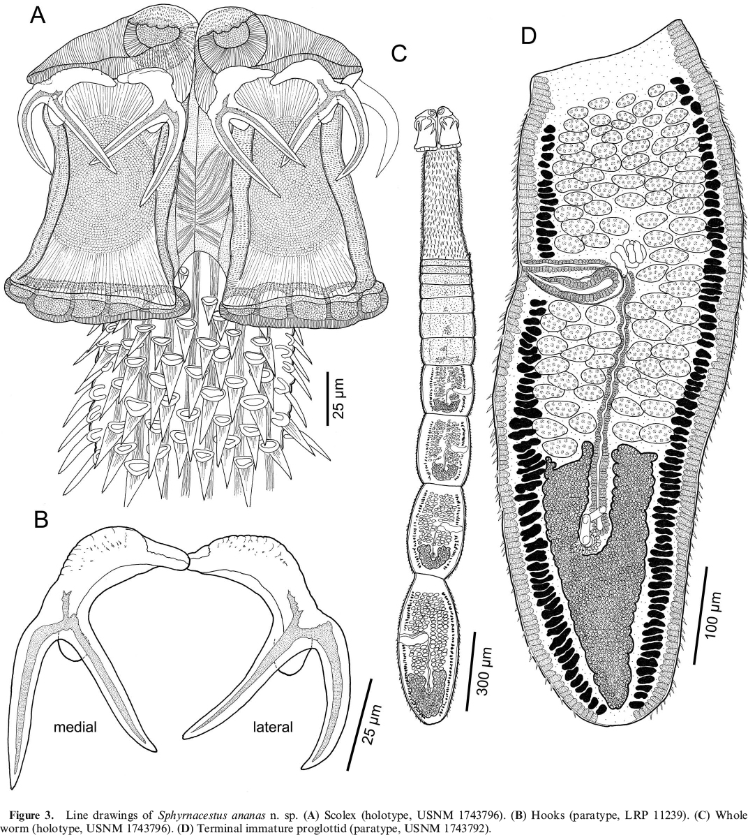 Caira, J. N., V.M. Bueno, and K. Jensen. 2025. Sisters Parasitizing Sisters: On the Onchobothriidean Tapeworms of Hammerhead and Requiem Sharks. Journal of Parasitology 111(4): 532–570. (7614) Download PDF |