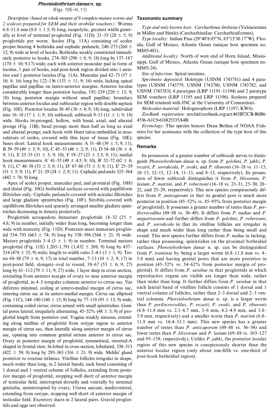 Caira, J. N., V.M. Bueno, and K. Jensen. 2025. Sisters Parasitizing Sisters: On the Onchobothriidean Tapeworms of Hammerhead and Requiem Sharks. Journal of Parasitology 111(4): 532–570. (7614) Download PDF |