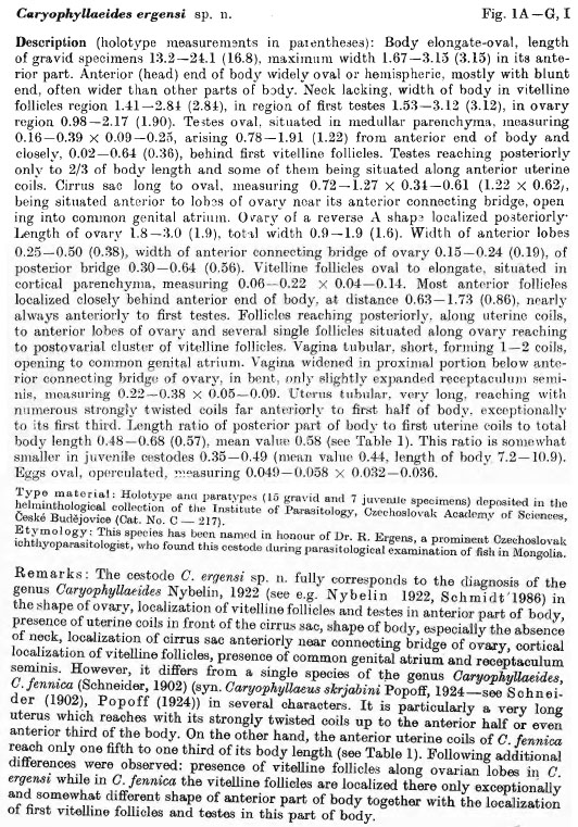 Scholz, T. 1990. Caryophyllaeides ergensi sp. n. (Cestoda: Caryophyllidea) from Leuciscus leuciscus baicalensis from Mongolia. Folia Parasitologica 37: 231-235. (678) Download PDF |