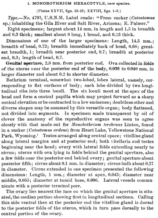 | Synonyms | Monobothrium hexacotyle Linton, 1897 Caryophyllaeus hexacotyle (Linton, 1897) Woodland, 1923 |