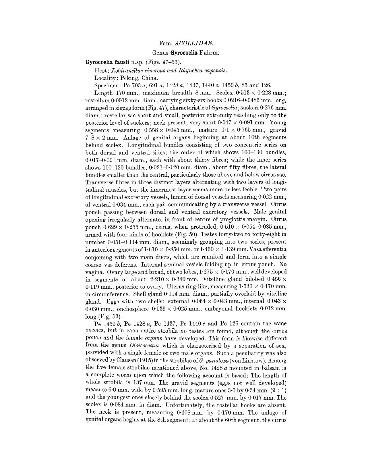 | Valid Name | Gyrocoelia crassa (Furhmann, 1900) Baer, 1940 |