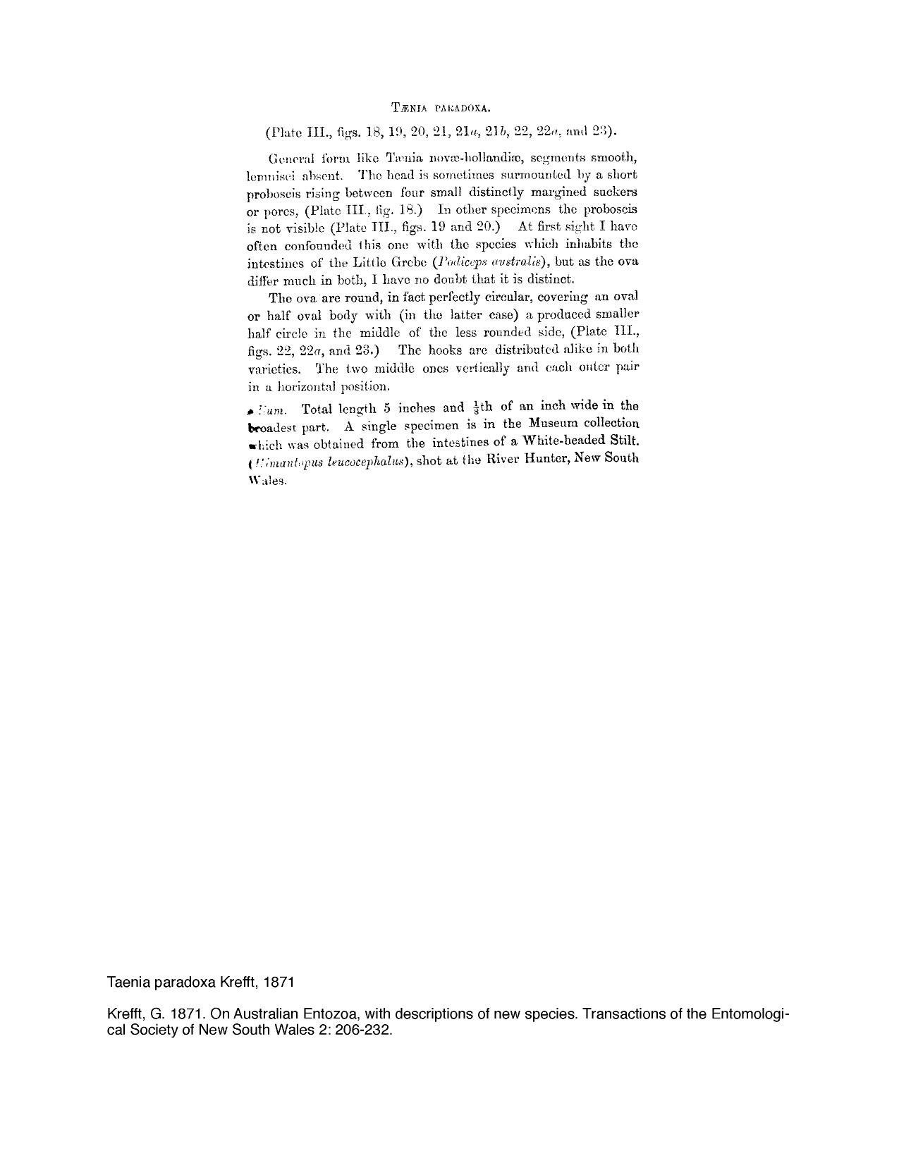| Scientific Name Notes | -Possible synonym of Dioicocestus novaehollandiae (Krefft, 1871) according to Johnston (1912) |