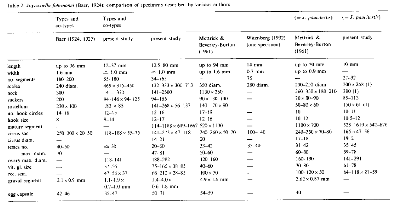 | Valid Name | Joyeuxiella fuhrmanni (Baer, 1924) Fuhrmann, 1935 |