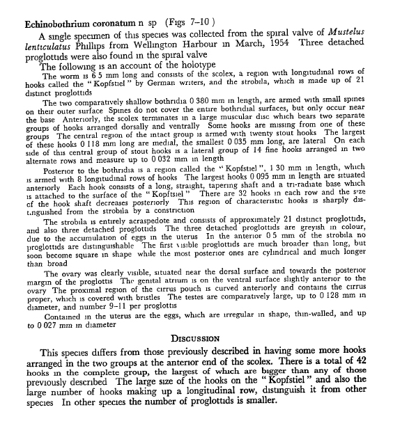 Robinson, E. S. 1959. Some new cestodes from New Zealand marine fishes. Transactions of the Royal Society of New Zealand 86: 381-392. (386) Download PDF |