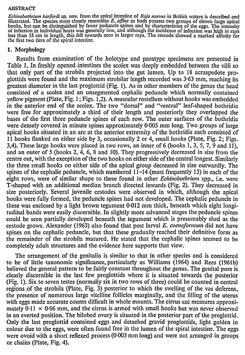 McVicar, A. H. 1976. Echinobothrium harfordi sp. nov. (Cestoda: Diphyllidae) from Raja naevus in the North Sea and English Channel. Journal of Helminthology 50: 31-38. (309) Download PDF |
