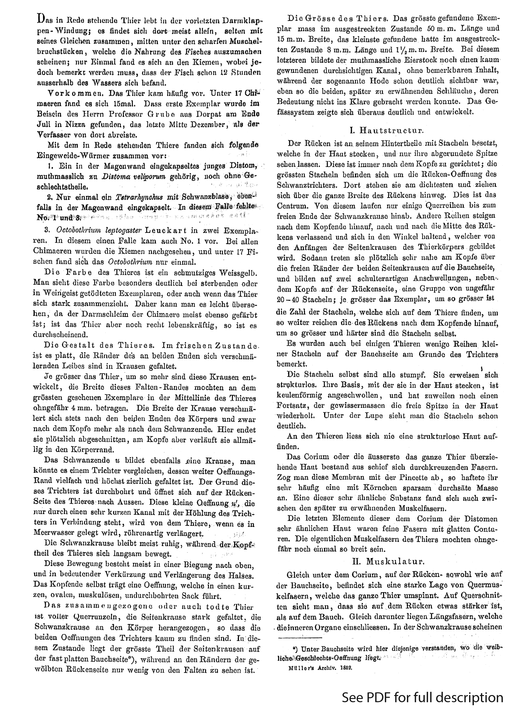 Wagener, G. R. 1852. Ueber einen neuen in der Chimaera monstrosa gefundenen Eingeweide-Wurm, Amphiptyches urna Grube und Wagener. Archiv fur Anatomie, Phisiologie uns Wissenschaftliche Medicin 1852: 543-554. (6611) Download PDF |