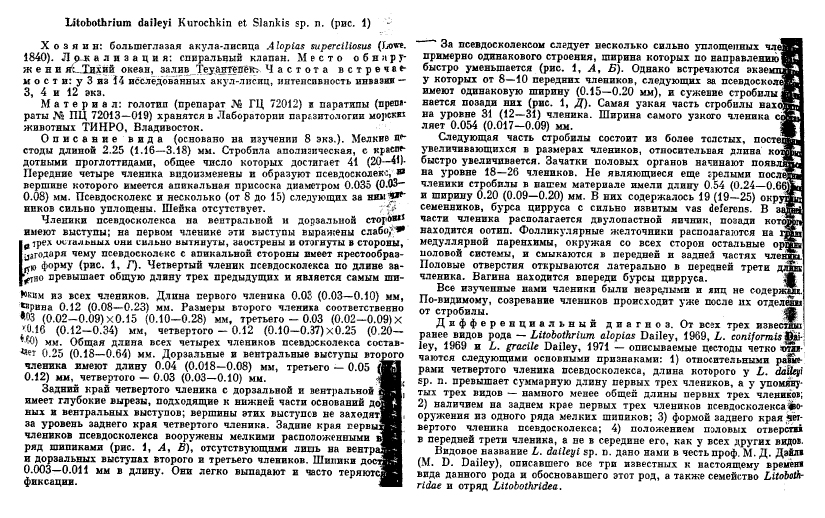 Kurochkin, V. B. and A. J. Slankis. 1973. [New representative and the composition of the order Litobothridea Dailey, 1969 (Eucestodes).] (in Russian). Parasitologia 7: 503-507. (261) Download PDF |