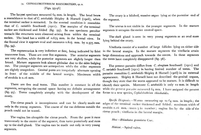 Subhapradha, C. K. 1955. Cestode parasites of fishes of Madras Coast. Indian Journal of Helminthology 7(2): 41-132. (462) Download PDF |