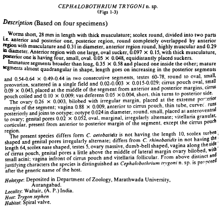 | Type Material | holotype deposited in Department of Zoology, Marathwada University, Aurangabad |