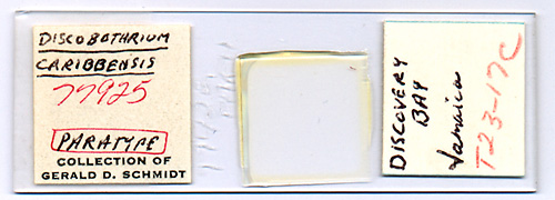 Gardner, S. L. and G. D. Schmidt. 1984. Discobothrium caribbensis sp. n., a lecanicephalidean cestode from a yellow-spotted stingray, Urolophus jamaicensis, in Jamaica. Journal of Parasitology 70: 303-304. (201) Download PDF |
