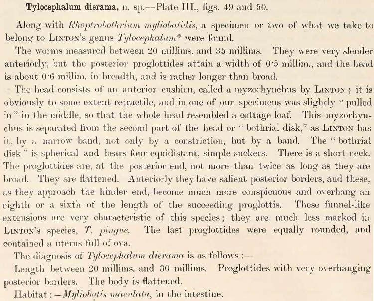 | Valid Name | Tylocephalum dierama Shipley & Hornell, 1906 |