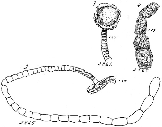 PLATE IX. FIGURES 2-4. Lecanicephalum peltatum n. sp. 2. Outine of living stobile, x27. 3. Top view of head of same, x27. 4. Posterior segments of same , compressed, x27.