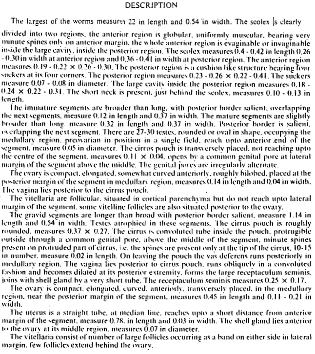 | Type Material | specimens: deposited in the Laboratory of Cestodology, Department of Zoology, Marathwada University, Aurangabad, India |