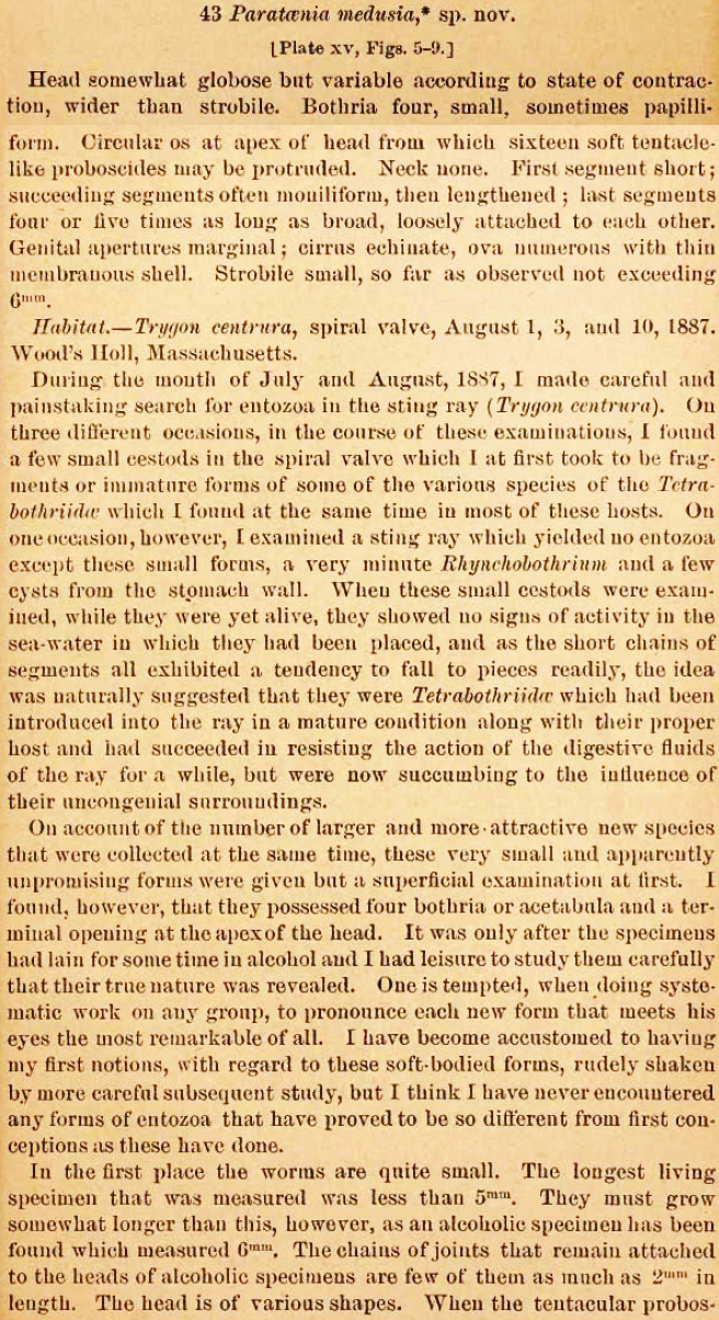 Linton, E. 1890. Notes on Entozoa of marine fishes of New England, with descriptions of several new species. Part II. United States Commision of Fish and Fisheries. Part XV. Report of the Commissioner for 1887 15: 718-899. (1011) Download PDF |